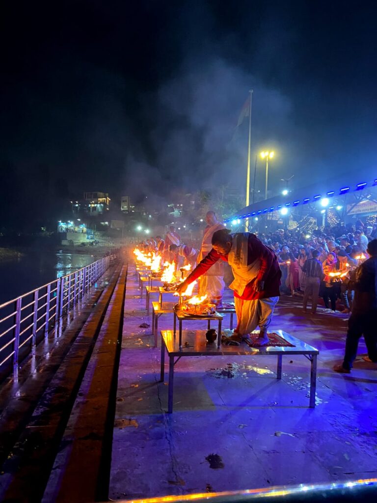 The following evening, I was all decked up and excited to attend the evening Ganga aarti at Parmarth ghat. Decked up because this is who I am, I like to dress for the occasion, and excited because finally, I will be at ease! I reached there on time and stood on the first row to make sure I get to see and hear everything, pleasantly.